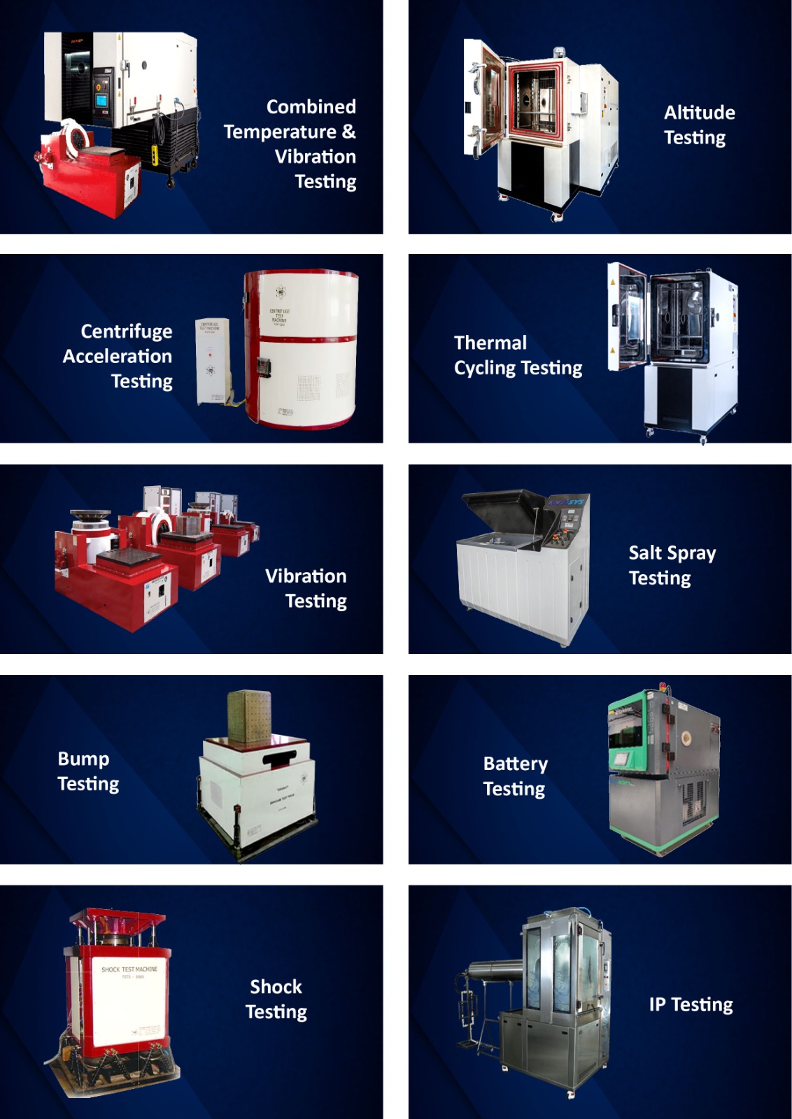 || Combined Temperature & Vibration Testing | Centrifuge Acceleration Testing | Vibration Testing | Bump & Shock Testing | Thermal Testing | IP Testing