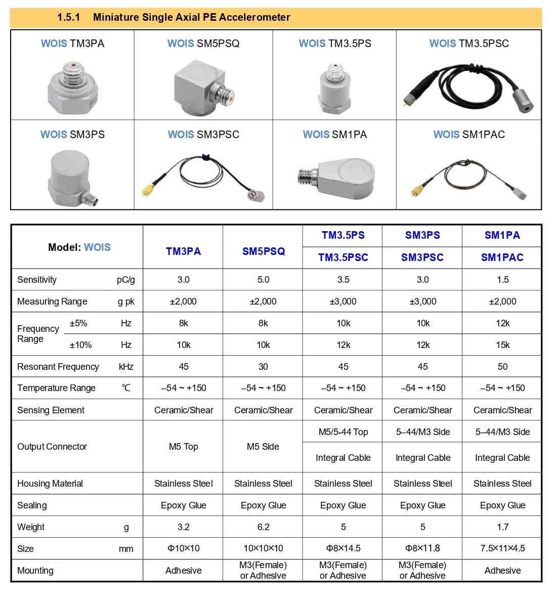 Miniature Uniaxial IEPE Accelerometer