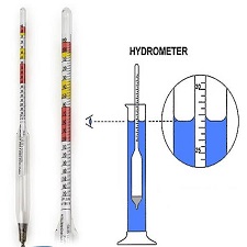 • Hydrometer: 0.6 g/ml to 2.0 g/ml